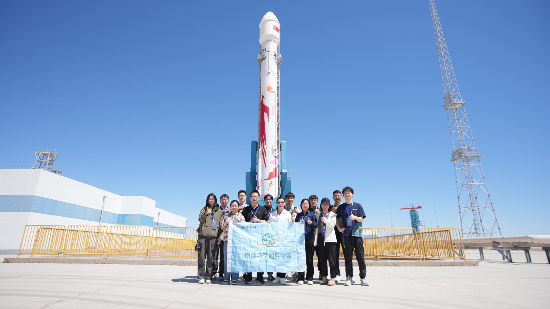 Party Secretary Hong JIANG led teachers and students to participate in the “National Conditions and Party History Training Class” and took a group photo in front of the “Zhuque-2” rocket carrying “Nanke-1.”