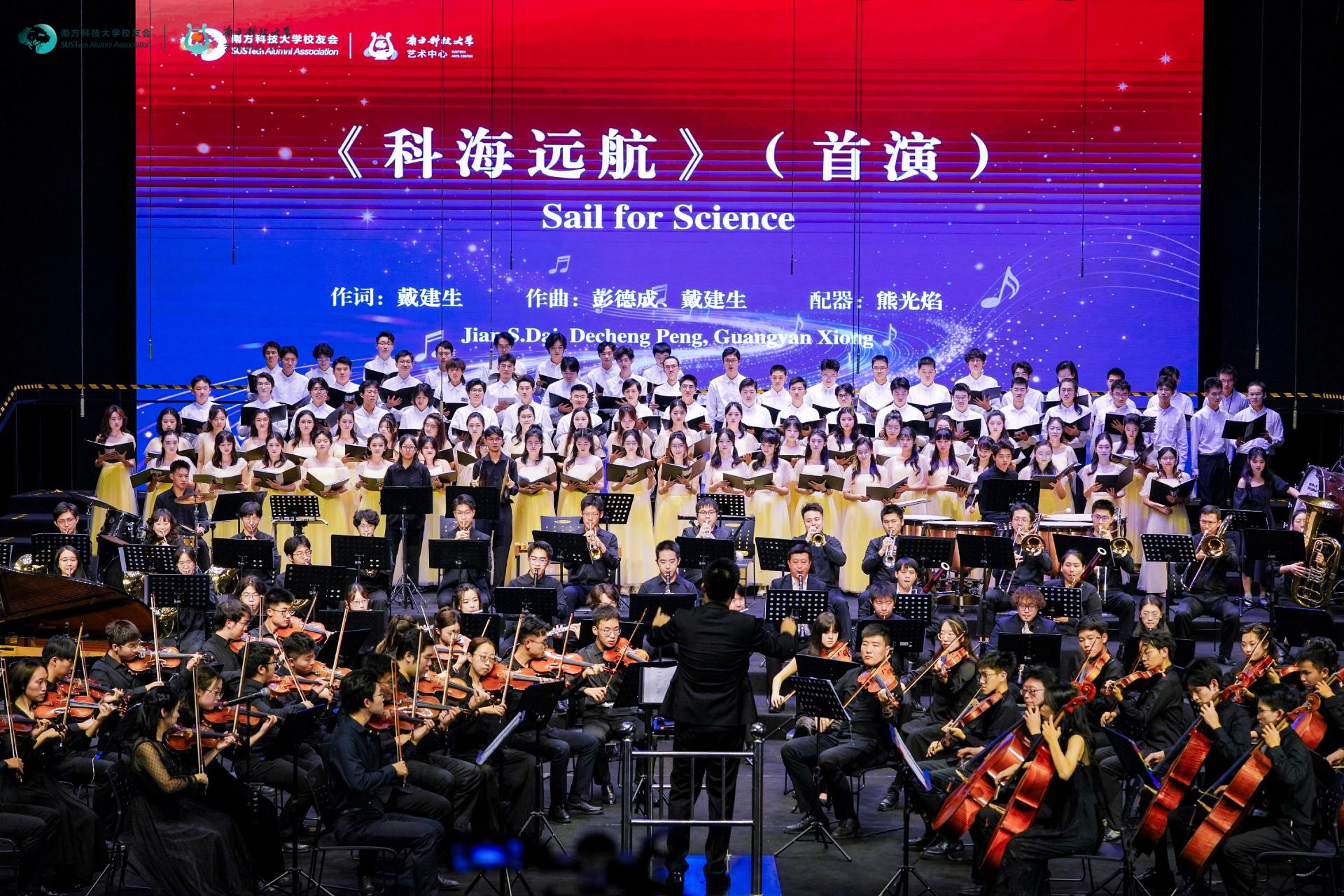 The concert featured a rich and diverse program, including newly arranged performances of classic Chinese-style pieces and popular hits, as well as suites from world-famous musicals, opera excerpts, and classical instrumental concertos. It balanced artistic expressiveness with stylistic variety, with the atmosphere building progressively along with the rhythm of the pieces. The finale, “Sail for Science,” was written and composed by Academician Jiansheng DAI. This piece, created specifically for the members of SUSTech, embodies their spirit of hard work and patriotic sentiment, resonating deeply with students, faculty, and alumni alike.