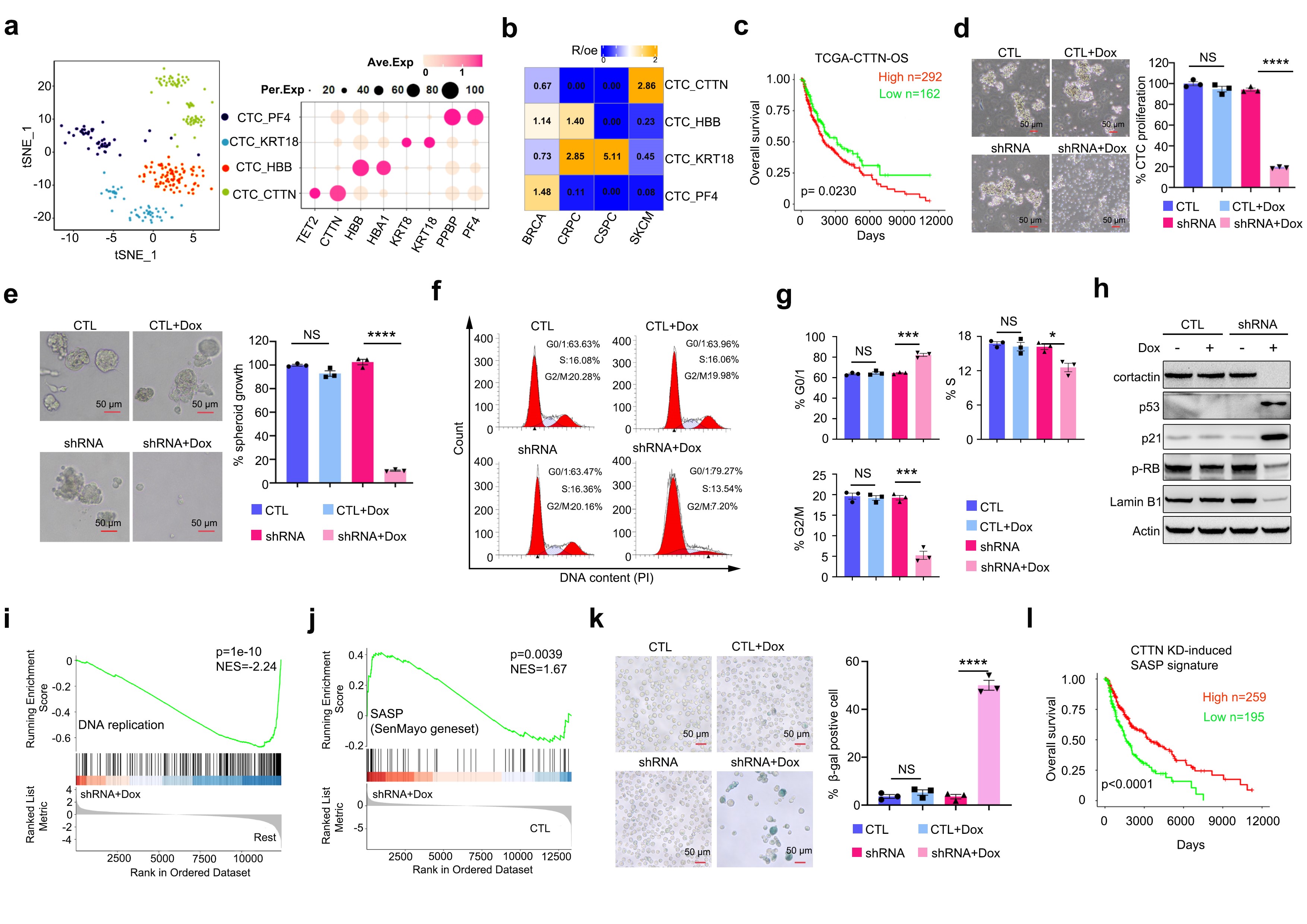 Figure 1. Cortactin knockdown induces senescence in melanoma circulating tumor cells (CTCs).