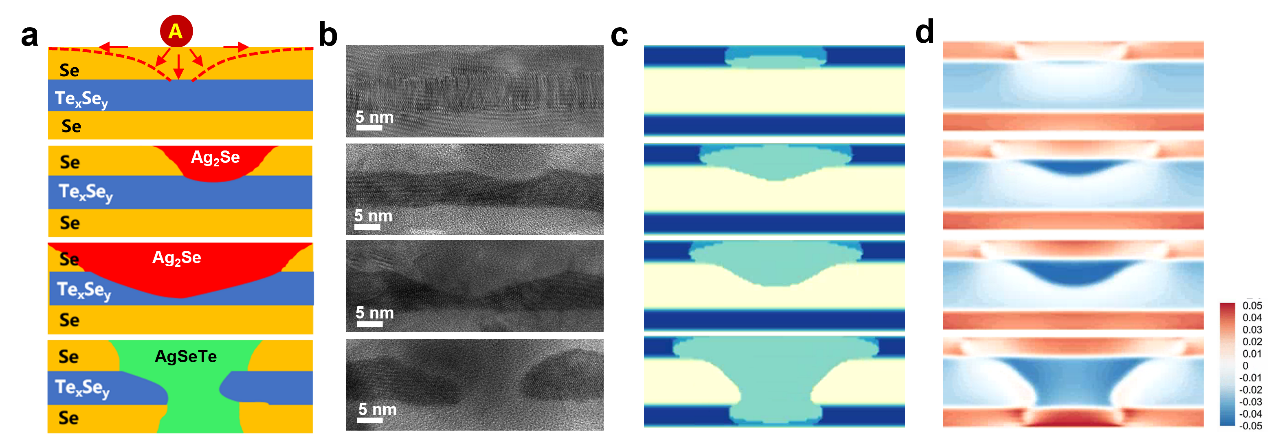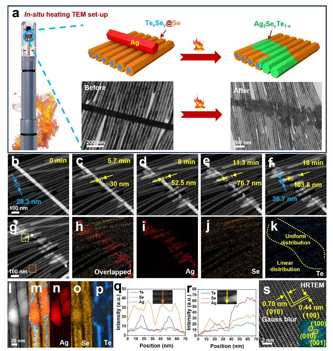 Assistant Professor Zhen HE, from the Department of Material Science and Engineering at the Southern University of Science and Technology (SUSTech), has recently investigated solid ion migration dynamics by applying different external fields via in-situ TEM. They developed a model system comprising individual Ag nanowires (NWs) integrated with an aligned 2D material TeₓSeᵧ@Se core-shell NWs, allowing for the quantitative analysis of formation processes and reaction kinetics under distinct external stimuli. The mechanistic understanding of solid-state ion kinetics and phase transition dynamics establishes a paradigm for intentional interconversion between multiphase heterostructures and monophasic systems, providing a design framework for next-generation functional nanomaterials.
