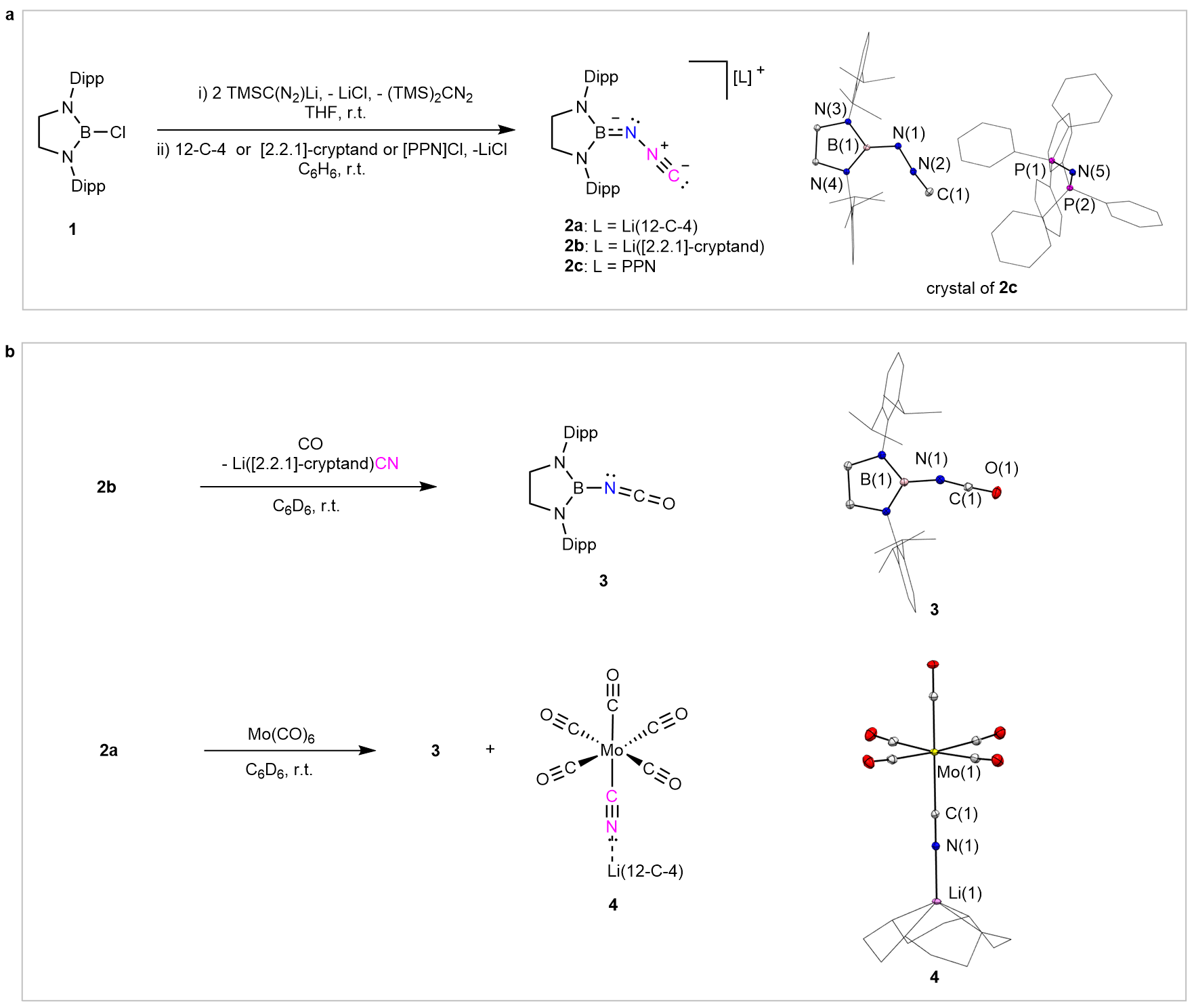 Remarkably, the team designed a straightforward and efficient synthetic pathway. Starting from a chlorodiazaborolidine 1 and TMSC(N2)Li as the key building blocks (Fig. 2a), the reaction proceeds through a sequence of salt metathesis followed by desilylation steps, ultimately enabling the successful synthesis of the isodiazomethyl anion.