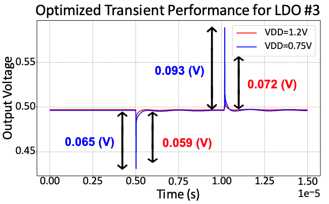 Figure 5: PSR and Transient Simulation Results for LDO#3 Circuit