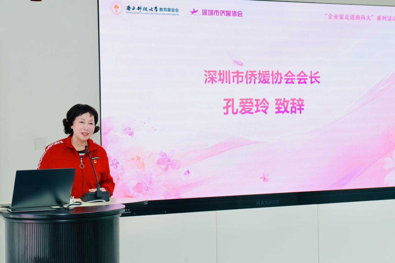 Ailing KONG highly praised the rapid and high-quality development of SUSTech and introduced relevant information about the Shenzhen Overseas Chinese Women’s Association. She stated that this visit to SUSTech is an important initiative by the association to deepen school-enterprise exchanges. She hopes to take this event as an opportunity to strengthen connections with SUSTech, share resources, and jointly plan development, demonstrating the responsibility and commitment of overseas Chinese women in the new era through practical work and achievements.