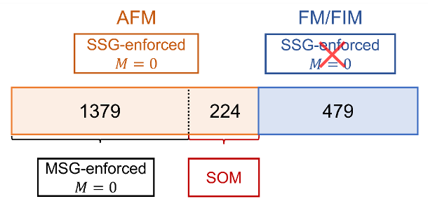 Figure 2. Magnetic classification based on SSG and MSG symmetry criteria, and statistical analysis of magnetic material classification based on the MAGNDATA database.