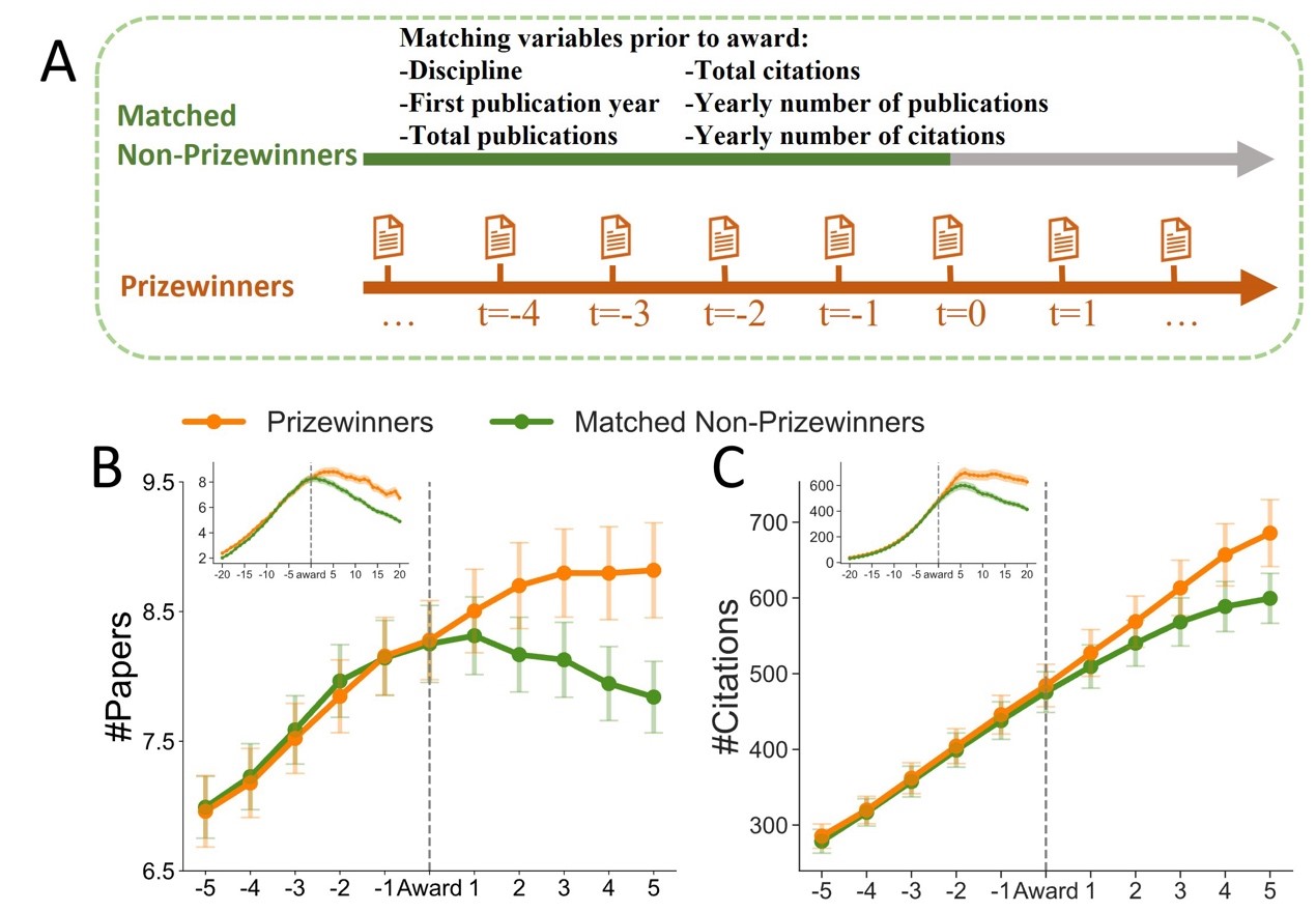 Analyzing 2,460 scientific prizes and data on more than 23,000 scientists worldwide, the researchers quantitatively show that prizewinners already demonstrate higher levels of innovation four to five years before receiving an award, and continue to hold that advantage afterward. The study further reveals that a more open and diverse collaboration network—characterized by shorter collaboration durations, lower collaborator overlap, and a broader span of research topics—is closely associated with this sustained innovation advantage.