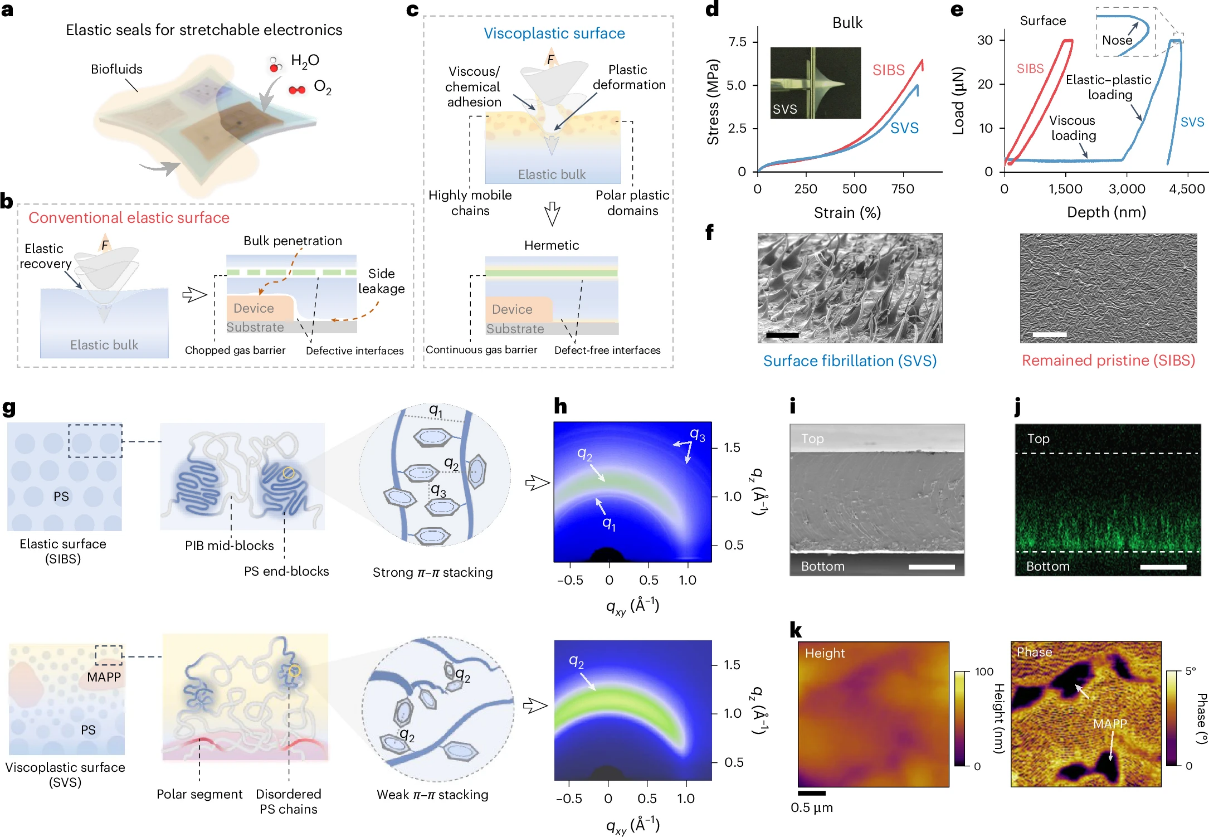 To address this challenge, Associate Professor Yanhao Yu’s team from the Department of Materials Science and Engineering at the Southern University of Science and Technology (SUSTech) has developed a hermetic stretchable seal featuring a viscoplastic surface. By introducing partially compatible polar polymers into a styrenic block copolymer elastomer and controlling their phase separation into polar domains in the near-surface region, an elastic-to-viscoplastic transition on a polymeric elastomer surface was achieved.