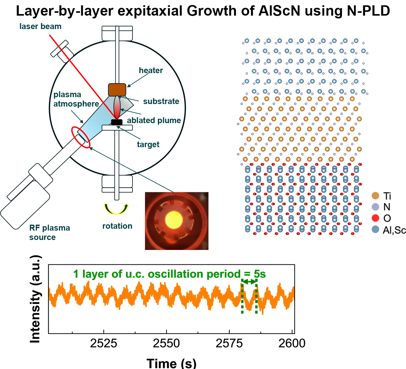 The researchers previously achieved epitaxial growth of single-crystal AlScN films with Sc compositions ranging from 0 to 0.3 using traditional pulsed laser deposition (PLD), with results published in Small Methods.